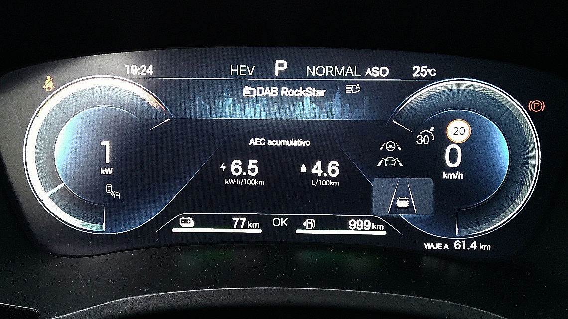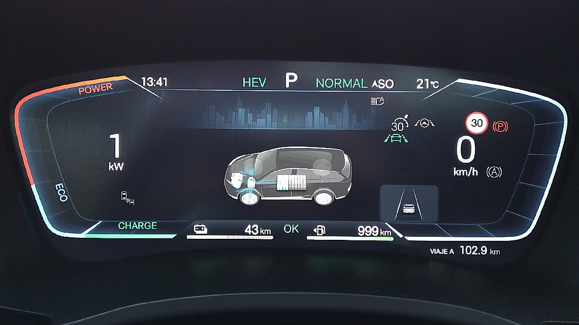 Y ya te digo yo que, como vehículo eléctrico me he movido más de lo anunciado sin consumir gasolina gracias a su alta capacidad de recuperación, regeneración y recarga autónoma, es decir, de su alto grado de reingresas electricidad a la batería cuando se aprovecha el propio coche para moverse con él.