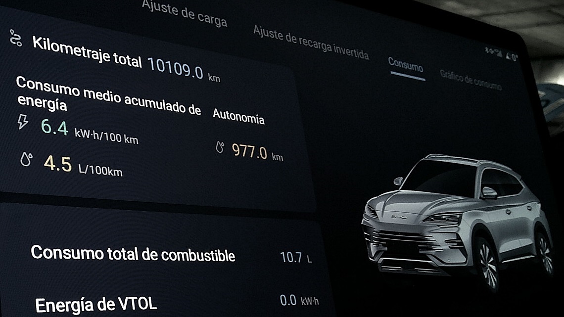 Te avanzo que mi objetico en esta prueba del BYD SEAL U híbrido enchufable es conocer tanto la duración de la batería, concretamente, si puede funcionar lo más de 100 km en modo eléctrico que anuncia su homologación, como, lo que realmente me interesa sobre este tipo de mecánicas que es cuánto consume una vez que el coche se queda sin electricidad.
